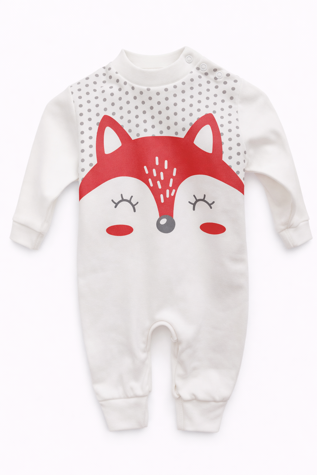 Os botões de pressão posicionados na lateral do pescoço permitem vestir e despir sem apertos, enquanto os botões entrepernas facilitam a troca de fraldas de forma rápida e discreta.