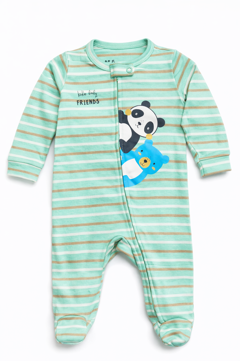 Macacão no tecido suedine 100% algodão, o macacão possui estampa de panda e urso, zíper em toda extensão, facilitando assim a troca do bebê.