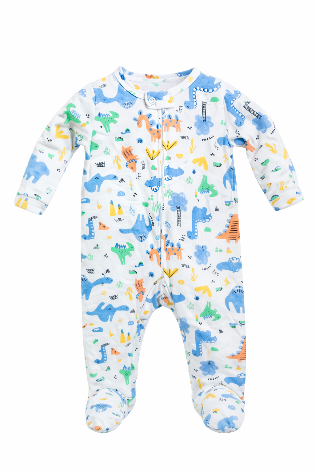 Macacão no tecido suedine 100% algodão, o macacão possui estampa de dinossauro, zíper em toda extensão, facilitando assim a troca do bebê.