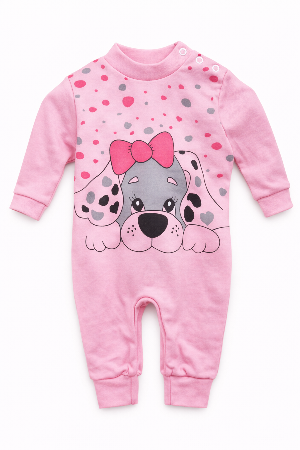 Os botões de pressão posicionados na lateral do pescoço permitem vestir e despir sem apertos, enquanto os botões entrepernas facilitam a troca de fraldas de forma rápida e discreta.
